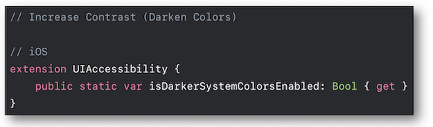 The isDarkerSystemColorsEnabled property enables the developed application to be informed of its value.