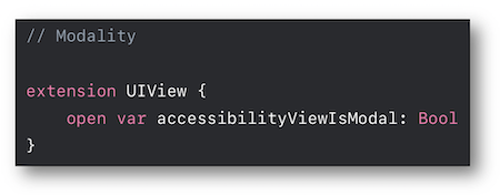 • Override accessibilityViewIsModal. (34:33)