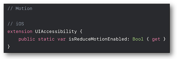 The isReduceMotionEnabled property enables the developed application to be adapted to the user preference.