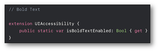 The isBoldTextEnabled property enables the developed application to be informed of its value.