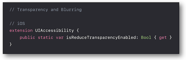 The isReduceTransparencyEnabled property value is available in the programing language as well.
